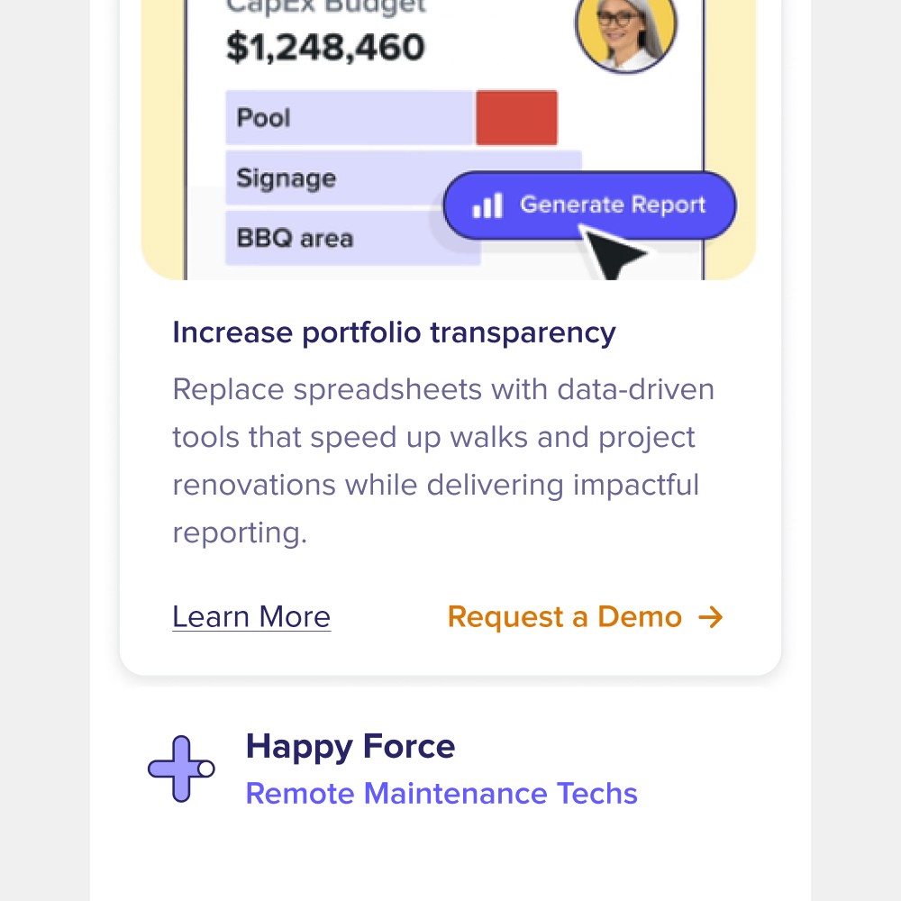 HappyCo↗︎ offers a collection of multifamily software & services designed to centralise property operations and improve the resident experience. Think inspections, work orders and maintenance tools used by the biggest multifamily companies in the world.