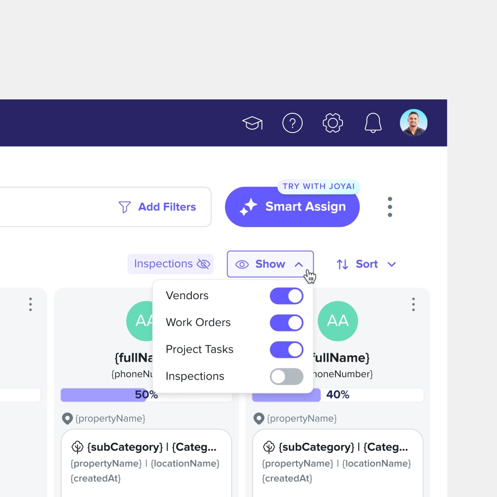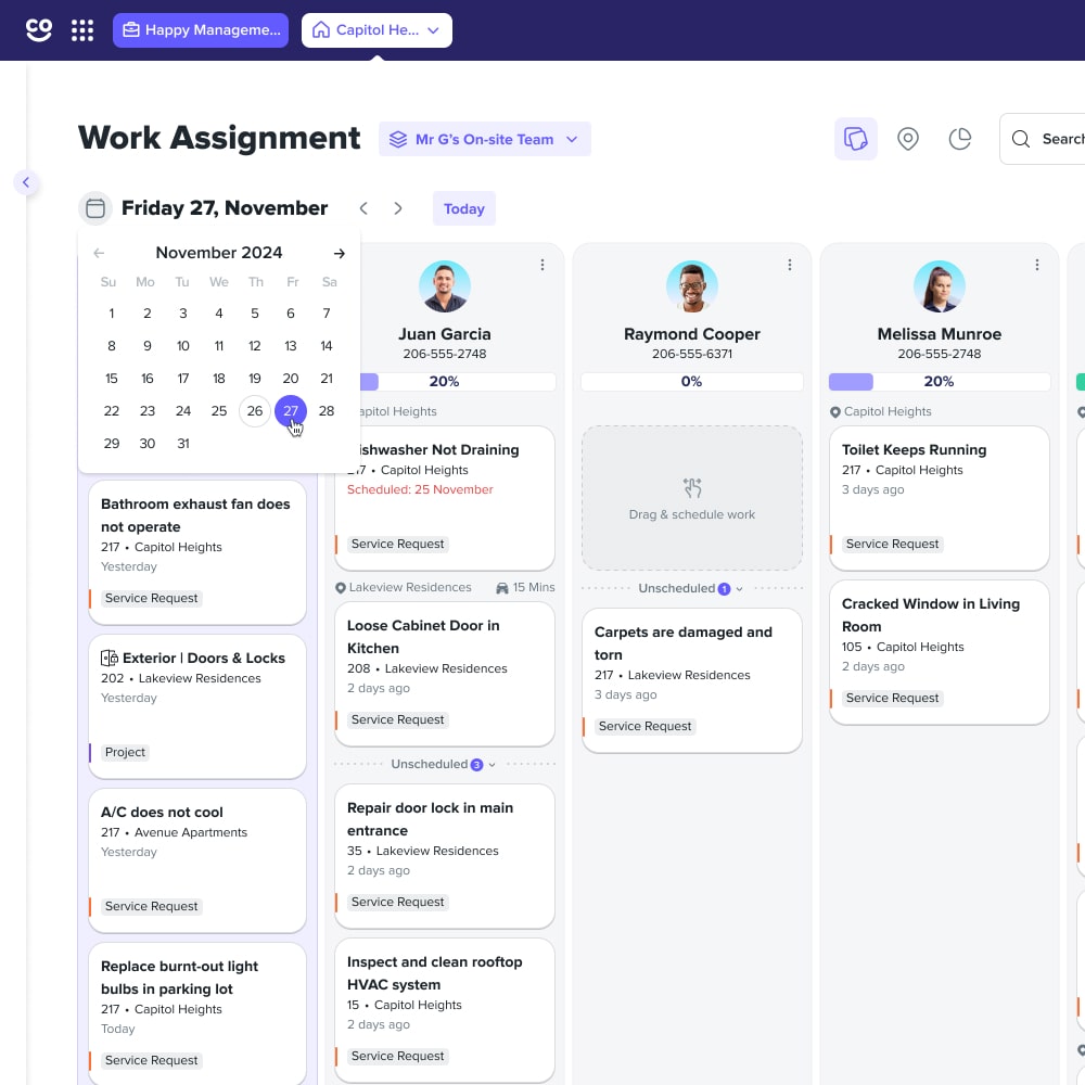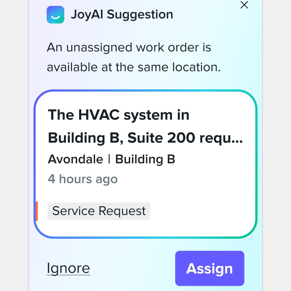For multifamily maintenance managers and supervisors aiming to maximize team efficiency, the Work Assignment Board is an AI scheduling tool that simplifies workforce management. Unlike competitors, where work orders lack detail, HappyCo’s JoyAI↗︎ enriches them and powers the Smart Assign feature for optimal technician scheduling.